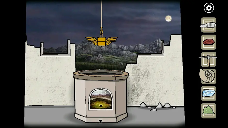 2、到达暗室后,调整桌子上的仪器,经过5次后外面的月亮变红,点击月亮流血后退出。在去小屋的路边获得红月石,拿走小屋里的石镐。
