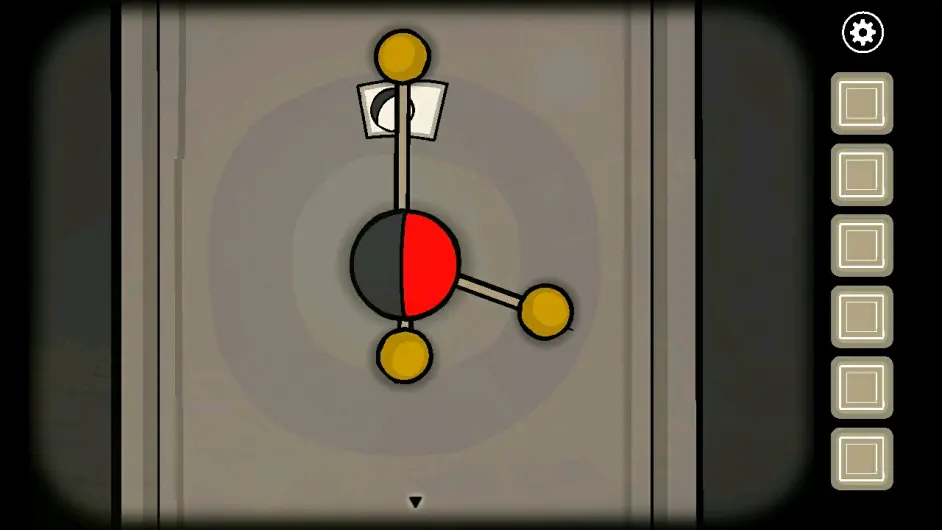 6、根据两个提示来到暗室,拨动指针打开暗格后获得银钥匙和铜钥匙,使用钥匙打开上面的锁,拉动曲柄降下梯子。