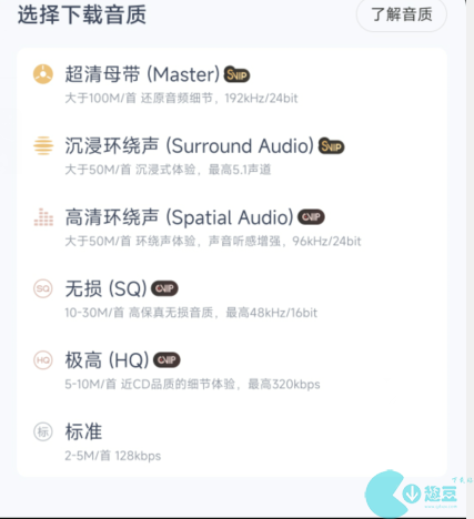 2、点击进去之后,我们需要选择下载音质,我们在这里选择标准,然后进行下载;
