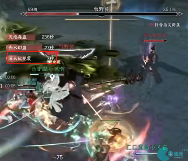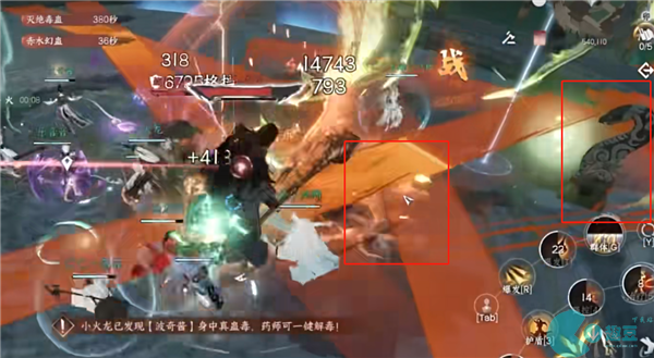 7、**一个团灭技能叫做浑天伏龙震,释放前会出现倒计时。这个技能是**的,只能用盾来抵挡。这个掌握好时机还是比较简单的。