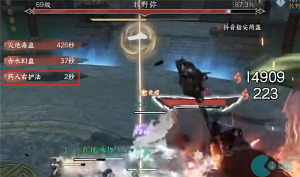 5、第五个技能是药人护法。Boss会召唤药人护法,伤害一般,但会清空T的仇恨值,仇恨一乱就很容易出现减员。这个时候推荐是主T携带百家技能-“打虎一式”,协助本身的仇恨技能重新建立仇恨,其他人适当放慢输出节奏,等待仇恨重新建立。