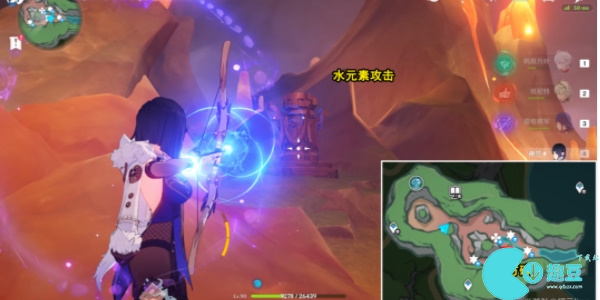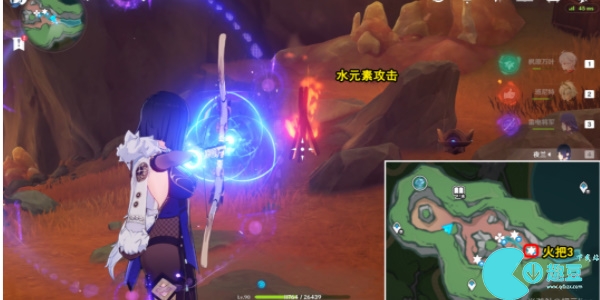 4、来到火把3处,使用水元素攻击熄灭火把3,然后使用水元素角色点亮元素方碑。
