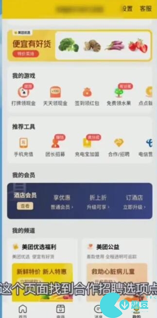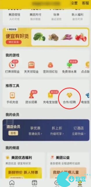 1、打开美团选择我的,找到合作招聘选项。