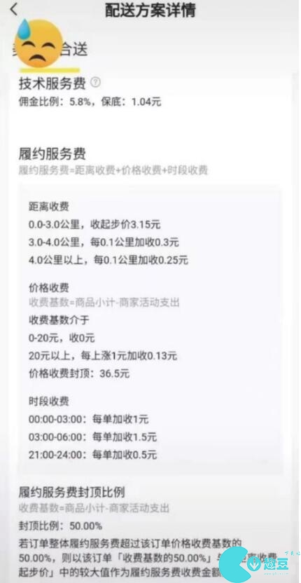 履约服务费(**50%)=距离收费 价格收费 时段收费