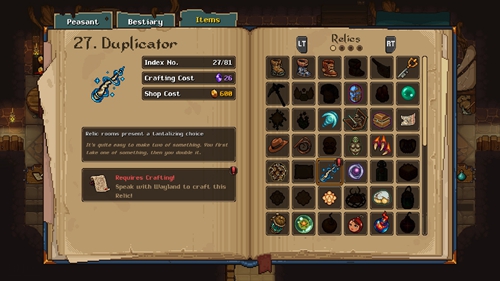 铁匠韦兰可以制作一些地牢当中的物品,**制作可以直接获得并携带到下一次冒险当中。