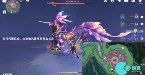 2、在挑战的过程中我们利用元素反应,快速击破千年珍珠骏麟雷盾至残血状态;