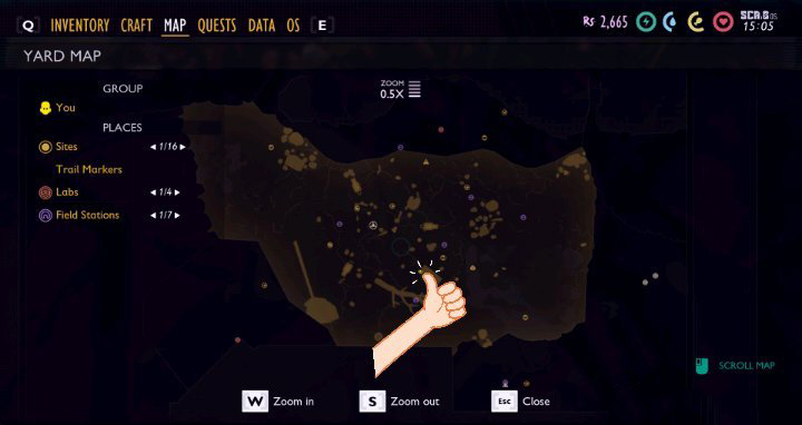 具**置在一块白色的大木板上方(地图上的长方形图标也较为明显)。