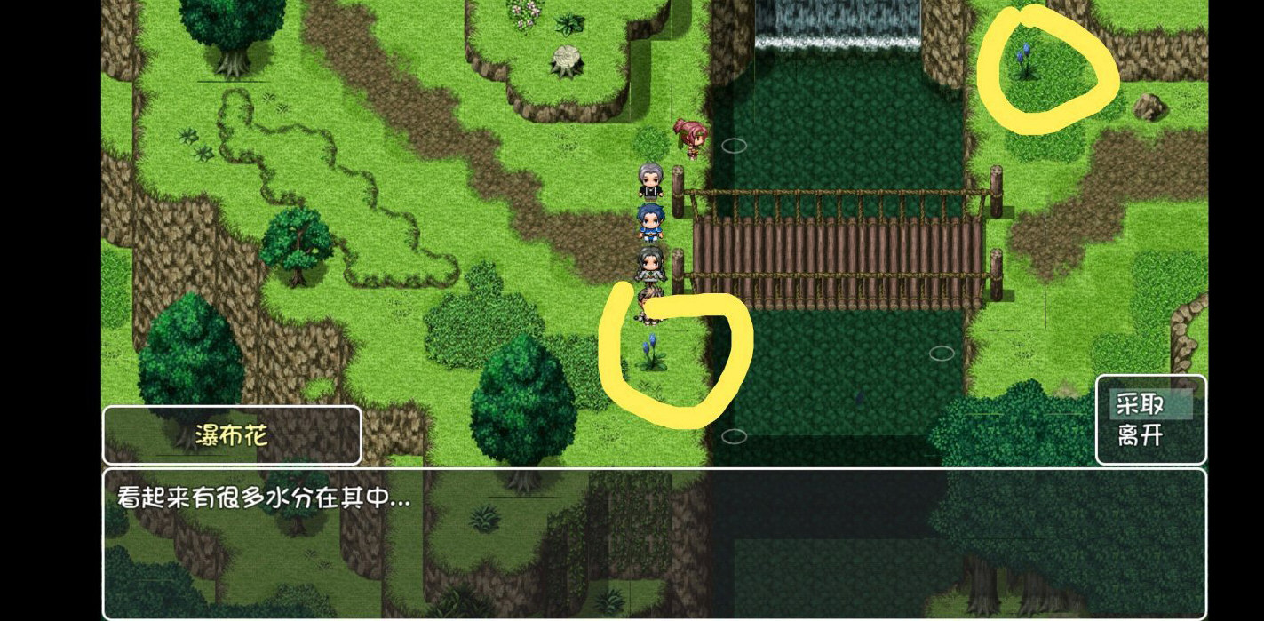 然后走到最深处,右边有一个瀑布这里就可以获得瀑布花了。