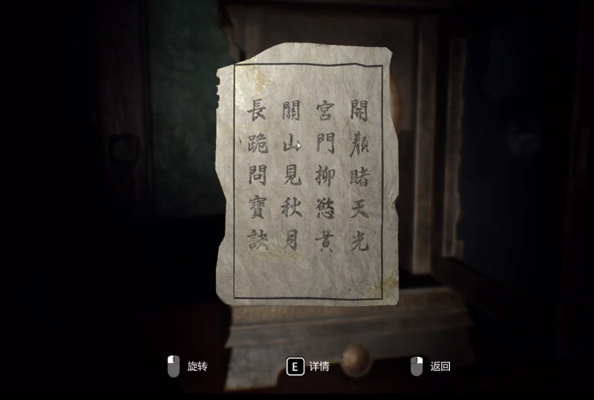 1、我们刚开始出现在一个房间里,这是我们不要着急移动,我们现在旁边每一个棺材上面探索,在每个棺材里面有一个纸片,都要收集,这里制作组有一个非常阴险的操作,在上楼梯右侧的第二个棺材里有两个纸张碎片非常隐秘,收集完碎片在后面的桌子上收集纸就可以组成一张完整的纸了。在上面会有提示走前方门的线索。1.1
