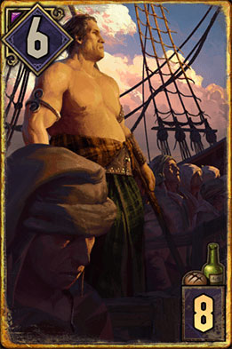 部署:将1个敌军单位移至它所在半场的另一排,并使其重伤2回合。每有 1 个相邻的“海盗”, 重伤的回合数便 1。