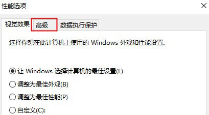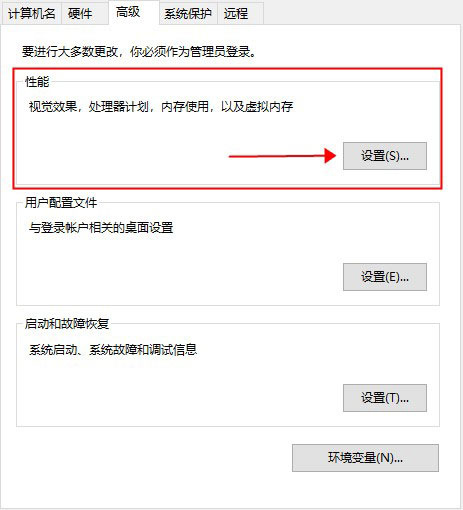 3,点击“性能”一览中的设置按钮进入“性能选项”;