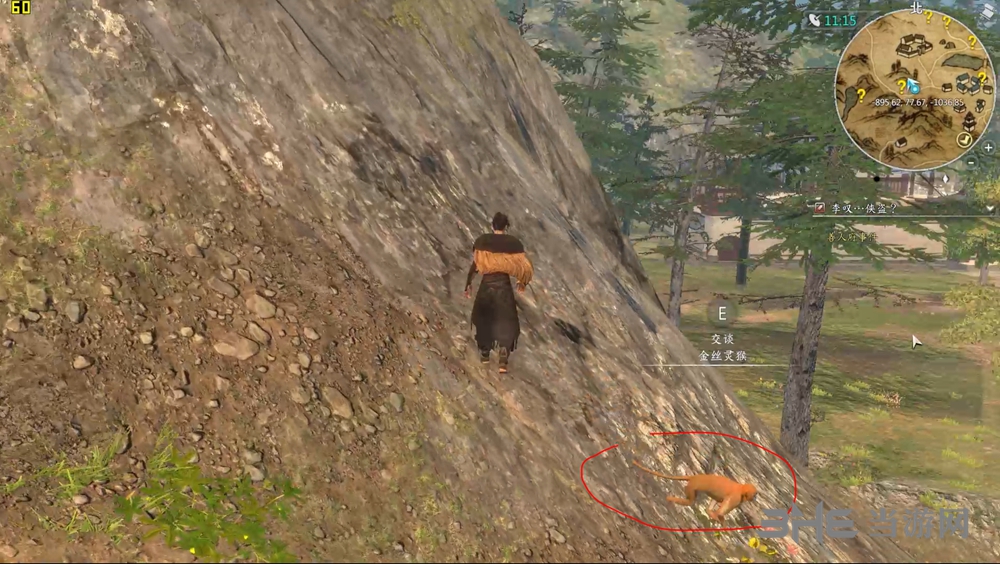 具**置点击放大下图,看右上角的小地图。本站网小编是在坐标-895.62,77.67,-1036.85,抓到猴子的。但这些猴子会一直跑,所以说位置不是固定的。