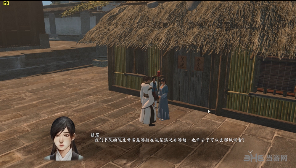 首先玩家需要找一艘去大研镇的船,询问绣眉,得知赋闲书院的院生精彩在浣花溪泛舟游憩。