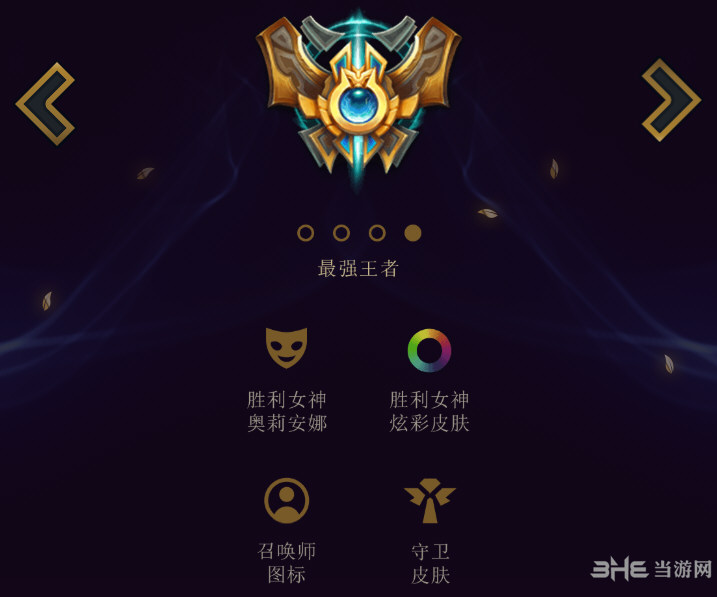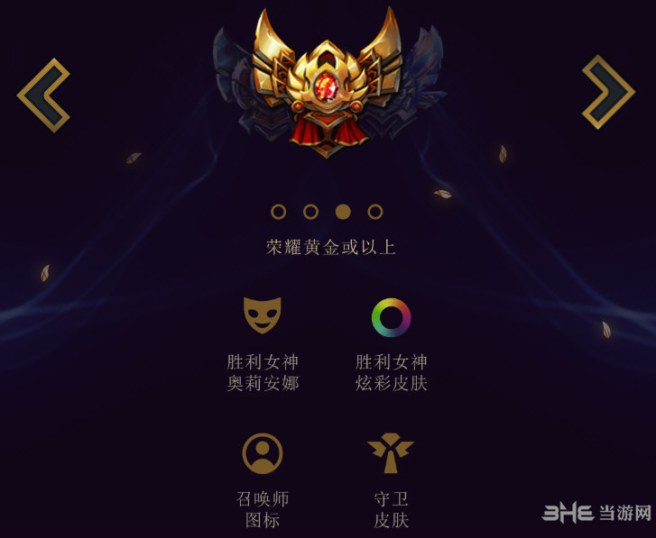 荣耀黄金:召唤师图标、守卫皮肤、胜利女神奥利安娜以及胜利女神炫彩皮肤。