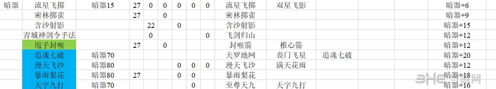 河洛群侠传暗器武学学习要求一览 暗器技能感悟需求表