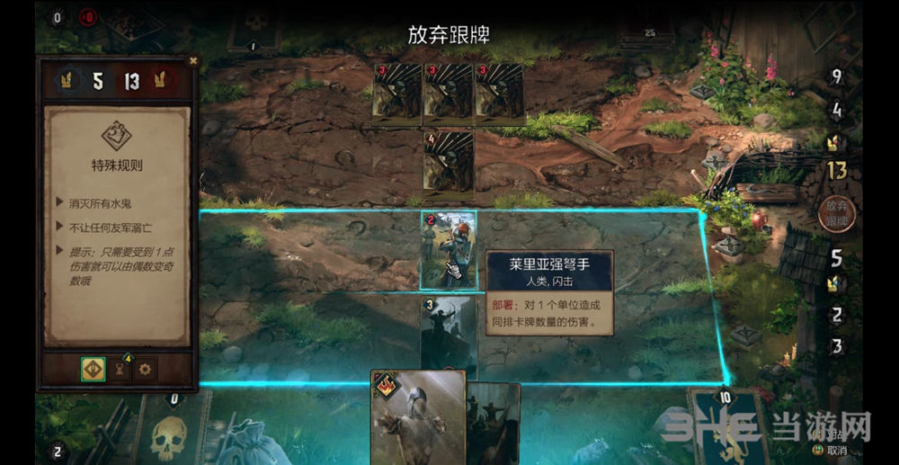 7.使用手牌中的**一张,莱里亚强弩手技能摧毁**一张水鬼。