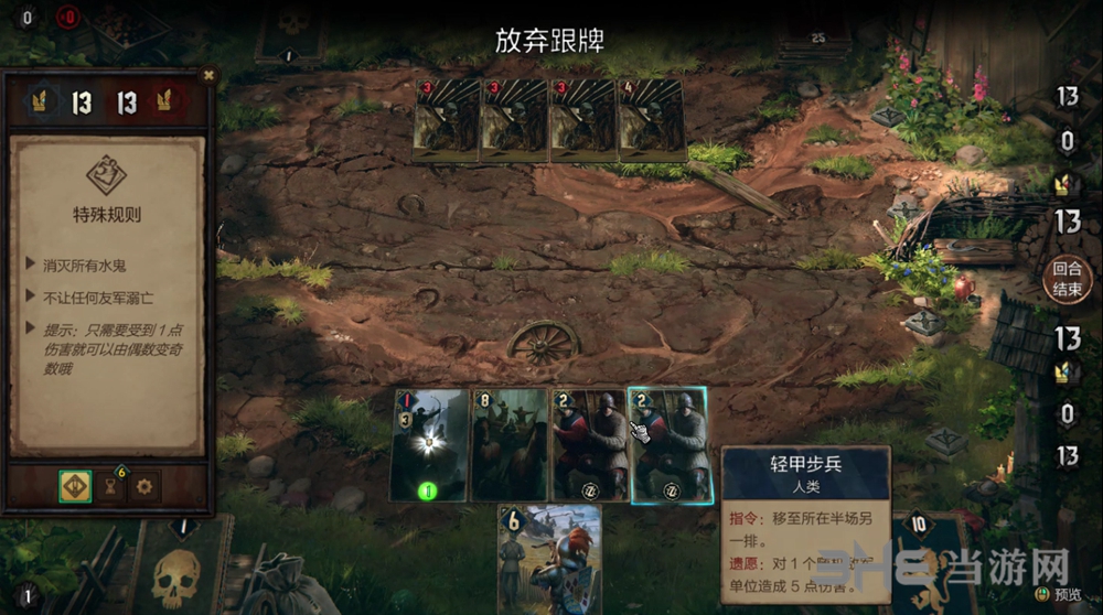 3.战车:召唤后,右方生成2个战力为2的轻甲步兵