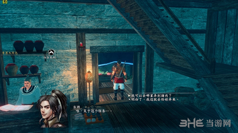 得知这个任务需要玩家收集5份猪肉,之后的对话捞一点获得猪肉的线索。