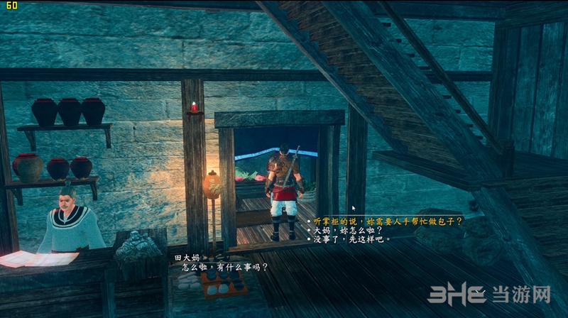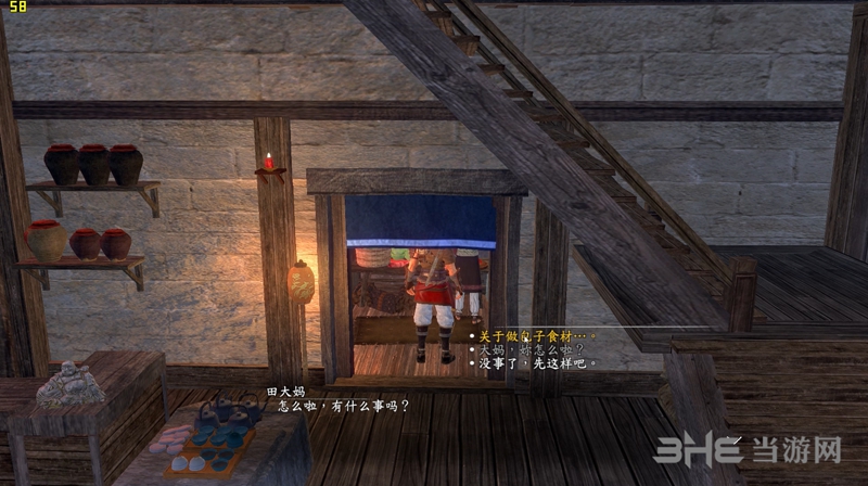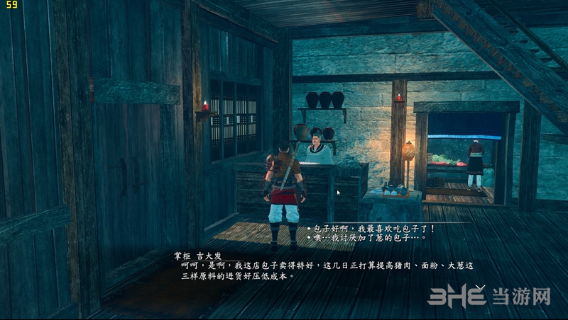 上去调查,发现掌柜正在进一堆做肉包的材料,选择**项(不知是否会对人物的拘谨与狂浪属性造成影响)。掌柜会邀请玩家晚上一块帮忙做肉包,任务触发香葱**包。