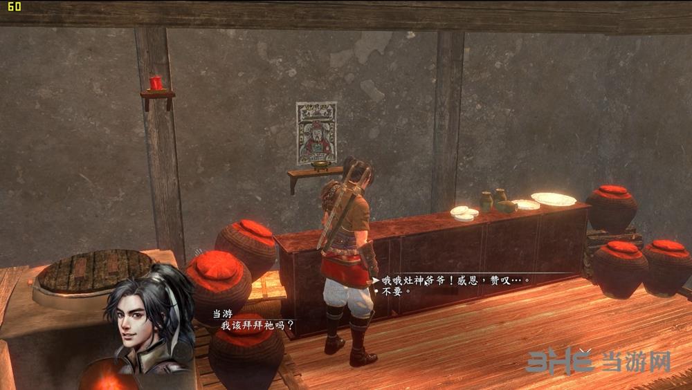 进女NPC身后的屋子里,调查灶神像,选择祭拜它。