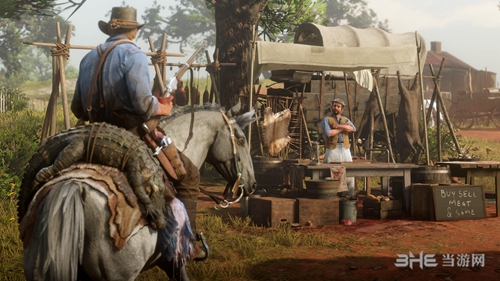 在一次成功的狩猎之后,您可以选择原地剥皮宰杀动物,或者完整地带走。不要把猎物留在地上太久,否则会有食腐动物慢慢接近。皮毛、动物材料、肉或者完整的动物尸体可以通过马匹运输卖给城镇里的肉铺,或者带回营地为炖锅加料,还可以做成服饰或者其它物品。大自然的馈赠如此丰富,**没有让人饥饿受冻的理由。
