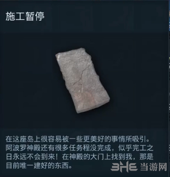 提示:在这座岛上很容被一些更美好的事物所吸引。阿波罗神殿还有很多任务没完成,似乎完工之日**不会到来!再神殿的大门上找到我,那时目前**建好的东西。