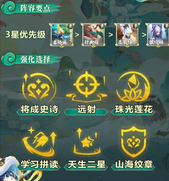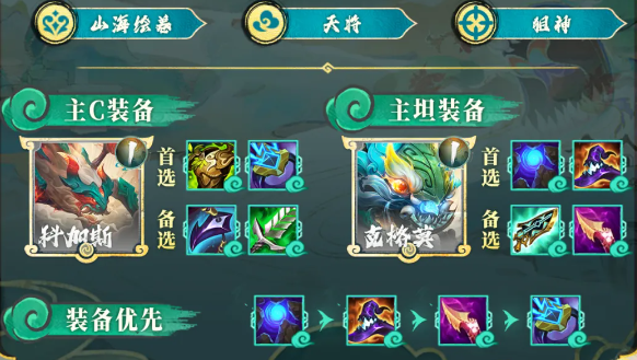 2、阵容羁绊:5山海绘卷2天将2幽魂2护卫2擎天卫2法师2狙神2神谕