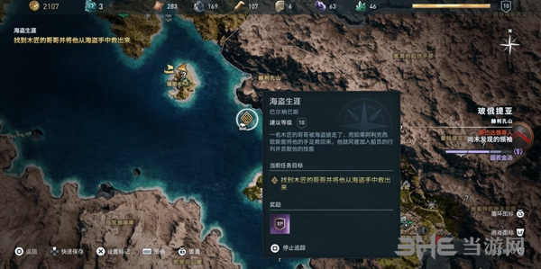 开船到地图上的锡斯维岛,发现上面有建议**为10的海盗生涯支线任务。