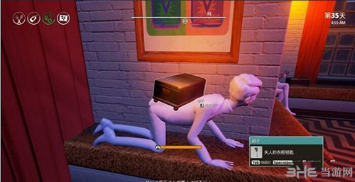上到古怪屋的顶楼,进入左边的屋子,在一个趴着的雕像背上的箱子中找到夫人的钥匙。