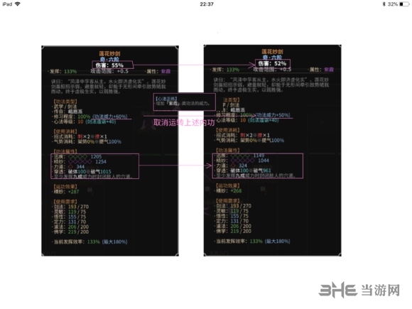 至于另一个紫色框起来的55%,我个人认为这个是相对伤害(๑• . •๑),数字越大这个功法伤害越高。
