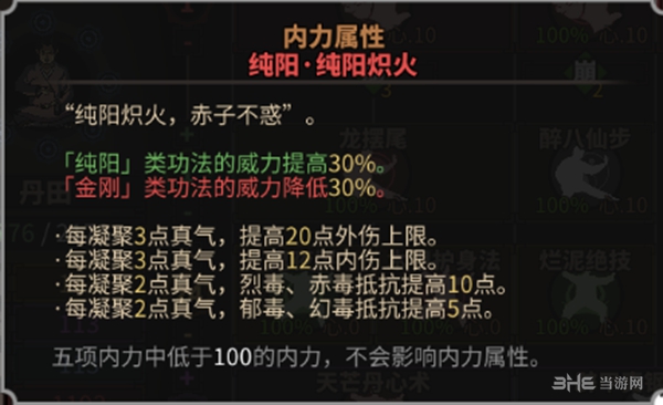 属性内力超过100属性才生效。