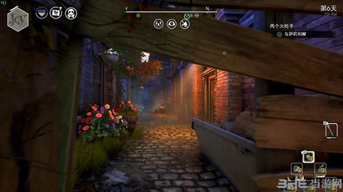 萨利家正面有警察挡道,从后面绕进巷子,从架子爬上2层窗户进入萨利家。