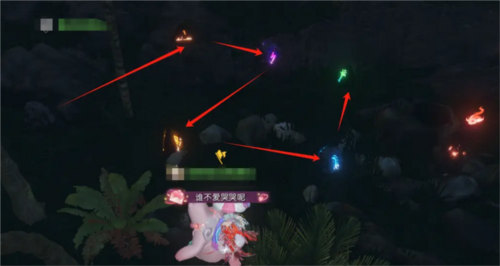 1、前往【1062,899】位置,按下下图箭头顺序点亮石头;
