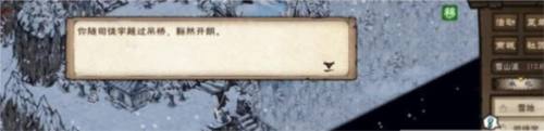 2.在(5,18)触发剧情,选择「手下留情」,在(6,18)对话「雪域剑客」,再从(0,14)进入【雪山派】。