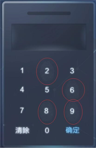 2、旁边的密码输入键盘上可以看到对应数字的指纹。