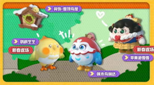 派对手册兑换商城梦幻焕新,典藏盲盒“啄木鸟琳达”和典藏配饰“雪顶鸟屋”惊喜上架,“鹦鹉芝芝”和“苹果派雪雪”新春限时返场!