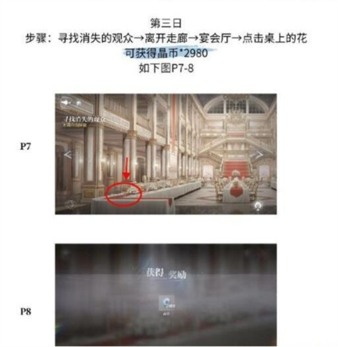 5、世界之外残酷节目彩蛋五:第三日寻找消失的观众-离开走廊-宴会厅-点击桌上的话可获得晶币*2980。