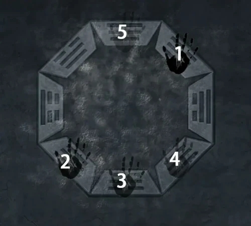 10、查看棺材完成拼图获得道具,在祠堂外面查看香炉按下图调整机关获得道具。