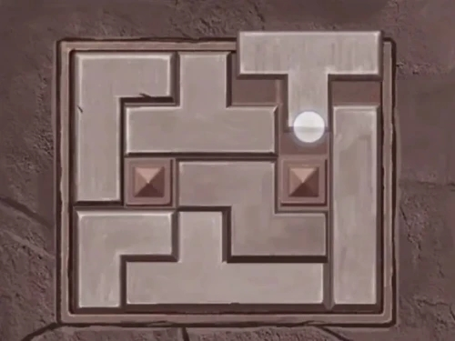 7、然后掀开地毯使用刻刀获得方块,之后放到石箱子上按下图完成拼图。