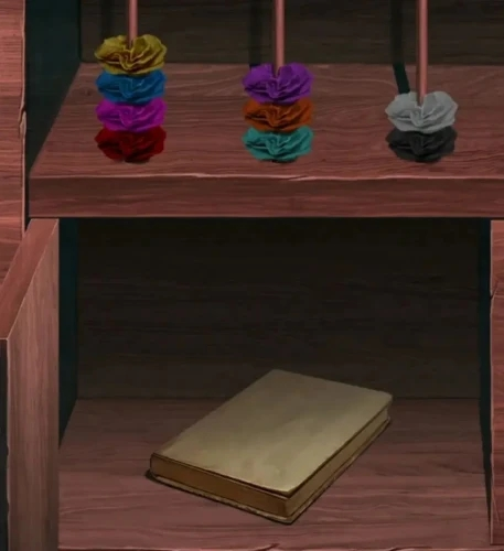 9、按下图调整纸花位置获得书,记住线索,之后使用按下图解开圆片机关。