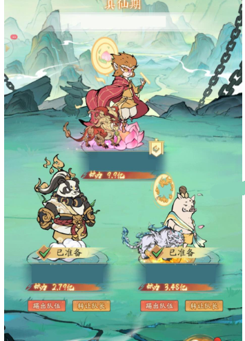 战斗期间,采用3个道友同时上阵,挑战各关卡的山海异兽。