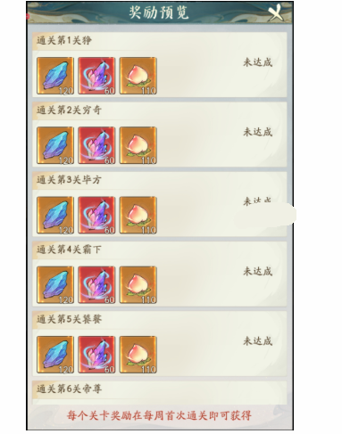 当周**挑战成功对应关卡,道友将可免费获得悟道石、天机石、仙桃。