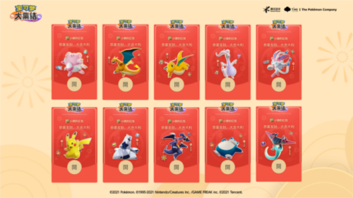 迎春纳福,好梦伴你!我们还为所有参与活动的训练家准备了《宝可梦大集结》专属新年祝福,请一并查收吧! 训练家在活动中选择一只喜欢的宝可梦,即可获得专属新年祝福。