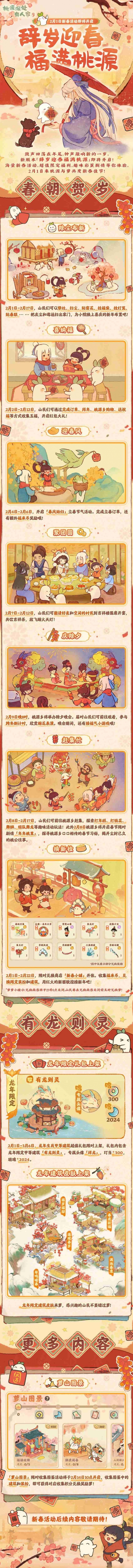 集五福,开启红包大礼!更有迎春风,聚团圆,庆除夕,赶集忙和换新妆活动~主打就是热热闹闹满桃源,过年的氛围感,萝萝山直接拉满萝!