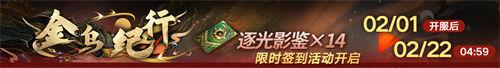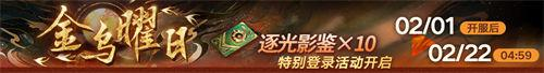 2月1日维护后~2月22日,通过体验活动关卡、击破BOSS、完成述异志略、扫荡主线副本等途径获取活动**【金乌纹饰】,赢得全新高危禁闭者【烟烟】、限定称号【传颂神话之人】、头像框【飞光】、勋章【乌羽之章】【金辉神略】【祀日绝赋】、唱片【祀日歌】、意识晶核、搜索令、异方晶等丰厚奖励!
