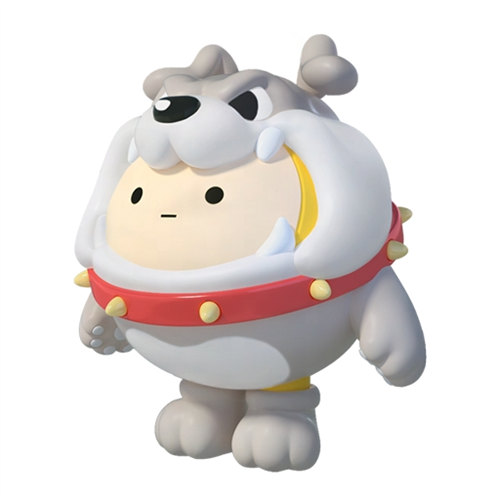 “斯派克”灰白色的毛发威武神气,红色尖刺项圈反差强烈,凌厉的眼神与尖锐的犬齿震慑力十足,展现出英国斗牛犬的纯正血统与霸气风采。别看“斯派克”的外表很是凶猛,但却是你的忠诚伙伴。