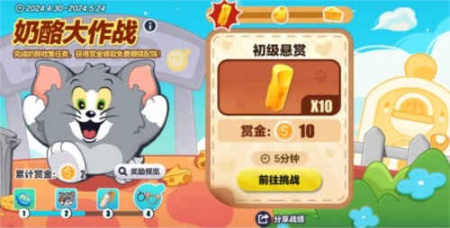 奶酪散发阵阵香气,馋嘴猫鼠各施奇招,究竟谁能拥有这无法拒绝的美味?4月30日至5月24日,领取悬赏任务参与【奶酪大作战】活动,获得赏金,免费解锁配饰“猫鼠眼镜”、表情“夺冠”等丰厚联动好礼!