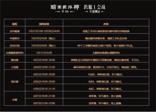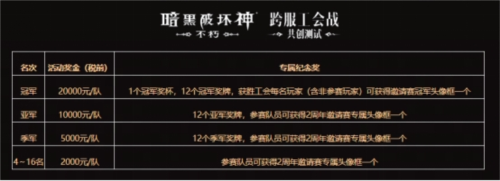 全服**间的对决,强强对抗热血开演!因初期测试规模有限,本次赛事将在有限的规模内,采取定向邀请制。5月27日3:00至5月28日24:00间,《暗黑**神:不朽》将邀请每个互通服务器当前在位的不朽者工会,以及暗影会工会排行榜的**名参与。被邀约工会会长将在游戏内收到定向邀约邮件,邮件内附带报名信息填写问卷,填写问卷即可参与报名。想要参与比赛收获荣耀和奖金?那就去争夺全服**至高强者的席位!