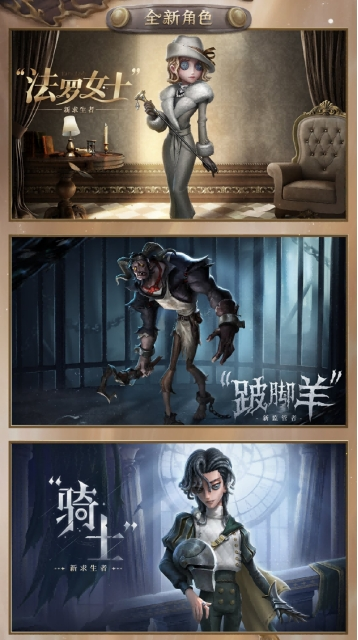 欧利蒂丝庄园中,监管者的奋力一击、求生者的竭力奔逃都令人称绝!每一位新访客的加入,都为追逐游戏增加了更多可能性。今年下半年,全新求生者“法罗女士”、全新监管者“跛脚羊”和全新求生者“骑士”将陆续与访客们见面,期待他们在庄园内的表现!