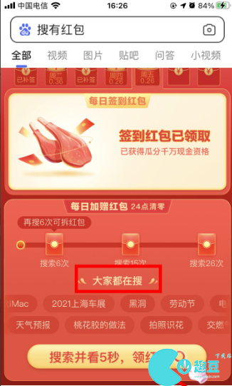但是“签到”功能将会在一些特殊版本再次上线,例如春节的搜有红包活动,同样是通过搜索“搜有红包”进入活动页面,根据弹窗出现的提示,完成搜索即可获得当前签到奖励。